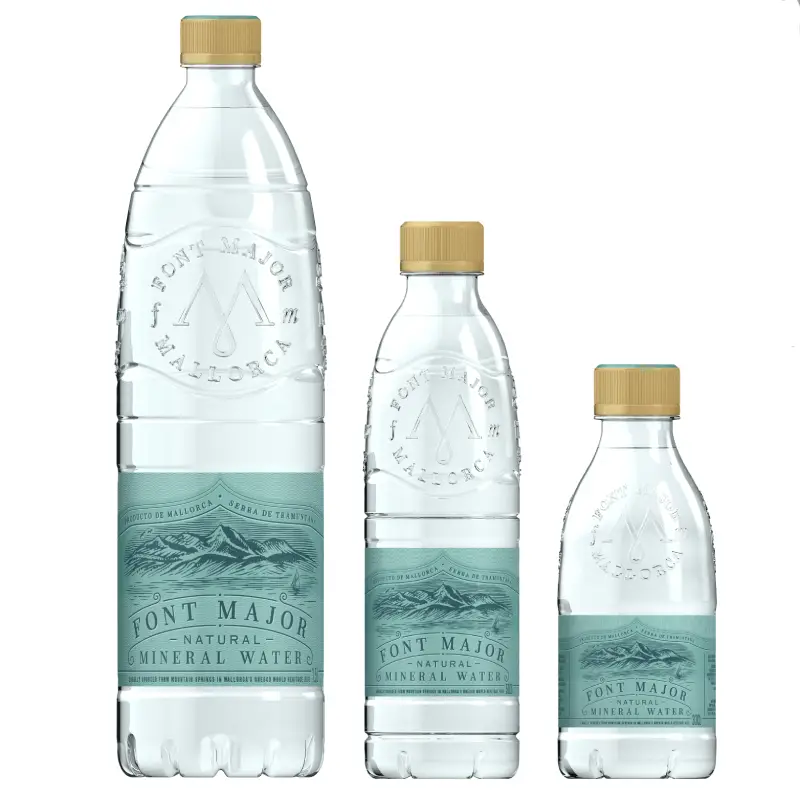 Font Major Naturell PET Flaschen aus Mallorca – natürliches Wasser in 0.33L, 0.5L, 1.5L PET Flaschen. Erfrischend, leicht prickelnd, perfekt für Alltag und Vorrat.